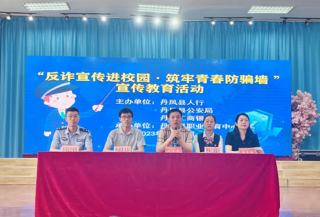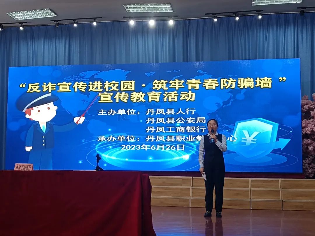 为进一步强化师生安全防范意识,提高学生自我保护及辨别诈骗手段的能力,2023年6月26日上午,丹凤县职教中心邀请丹凤县公安局反诈中心民警、丹凤县人民银行、丹凤县工商银行工作人员在全校开展了一次以“反诈宣传进校园·筑牢青春防骗墙”为主题的反诈宣传教育活动。活动由副校长董黎娜主持。